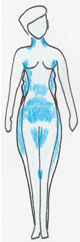 Bei Frauen bildet sich der Stau oft tiefer im Becken, so dass in der Folge die Beine gestaut sind. Reiterhosen, Krampfadern, Knöchelödeme, Knie- oder Hüftprobleme können die Folge sein. Hier arbeiten wir unter Berücksichtigung der Verläufe der Faszienstränge und geben dem Bindegewebe die Möglichkeit, sich neu zu strukturieren.
